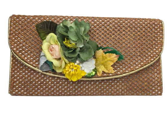 Cartera exclusiva con flores secas en verde y amarillo