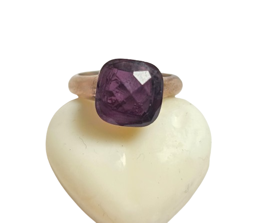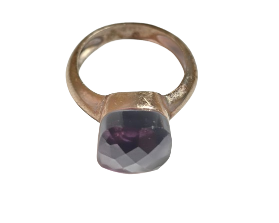 Sortija plata de ley chapada con circonita hidrotermal color Amatista